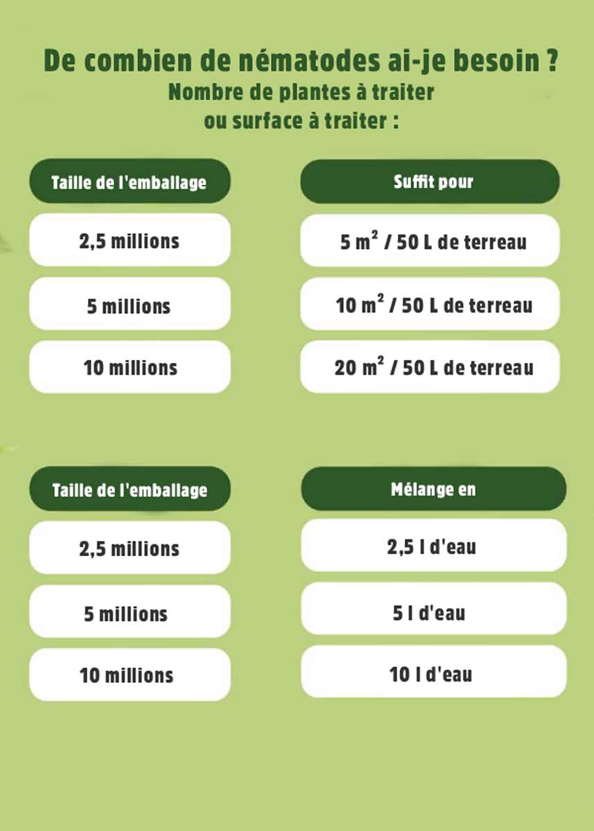 - 5 millions de nématodes de l'espèce Steinernema feltiae pour 10 m²