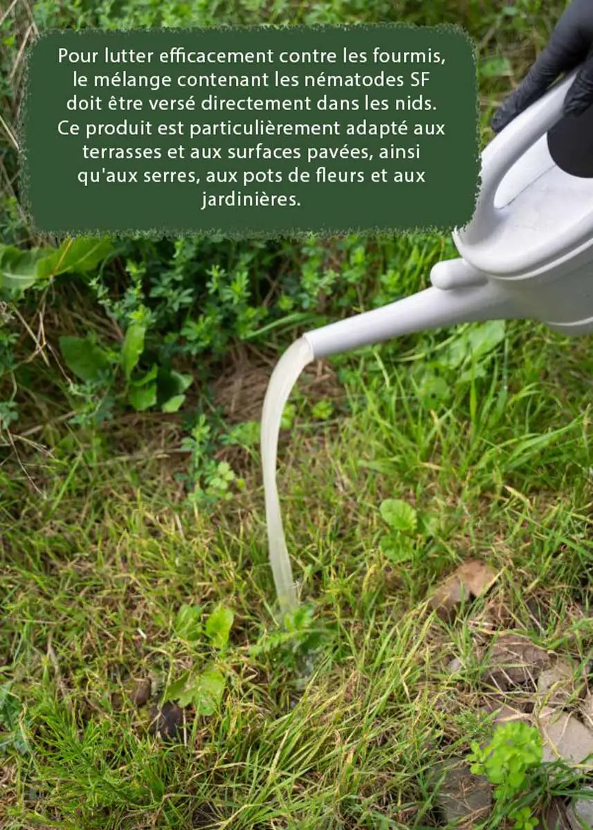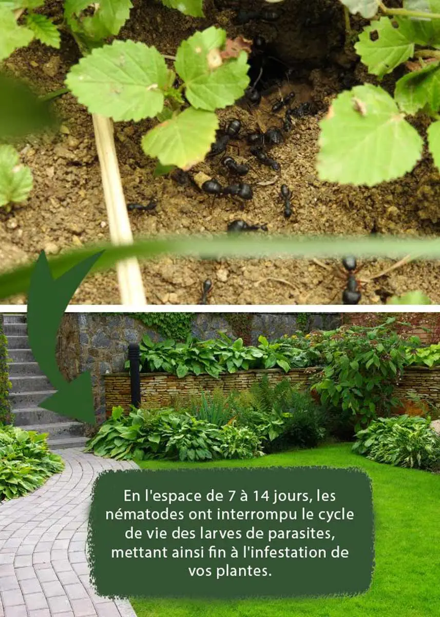 ✓ Lutte naturelle: Les nématodes sont les ennemis naturels des fourmis. L'utilisation de nématodes remplace les produits de lutte chimique.