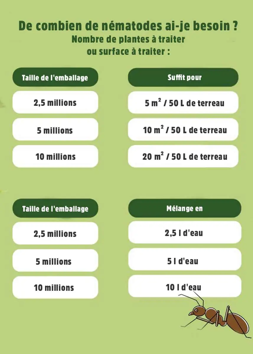 - 2,5 millions de nématodes de l'espèce Steinernema feltiae pour 5 m²