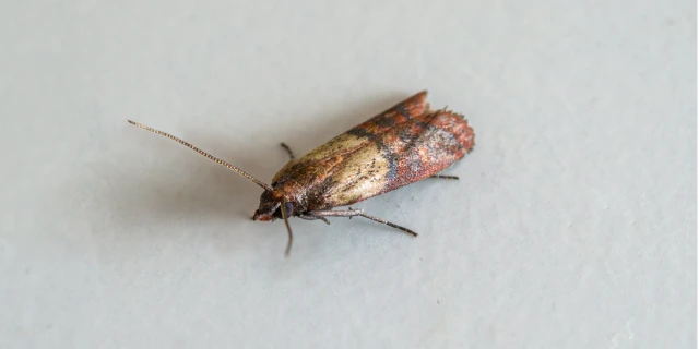 Un papillon de nuit par-ci, un papillon de nuit par-là - et à peine avez-vous le temps de vous en rendre compte que vous en trouvez à chaque coin de rue. Les mites sont des insectes nocturnes qui appartiennent à l'ordre des papillons et qui peuvent se propager rapidement. Une femelle peut pondre plusieurs centaines d'œufs en peu de temps, qui se transforment rapidement en larves voraces. Ce sont ces larves qui causent les véritables dégâts en se nourrissant de tissus ou d'aliments. Les mites des vêtements et les mites alimentaires appartiennent à l'ordre des lépidoptères, la teigne des fruits secs et la teigne de la farine étant parmi les principaux ravageurs des stocks en Europe. La teigne des fruits secs, également connue sous le nom de teigne des grains ou des provisions, se nourrit principalement de produits céréaliers, de noix et de cacao, tandis que la teigne de la farine préfère principalement la farine. L'endroit où se trouvent les animaux vous donne une première indication s'il s'agit de mites vestimentaires ou de mites alimentaires. Il est donc important d'y regarder de plus près. Les mites alimentaires sont un peu plus grandes et plus colorées que les mites des vêtementselles n'ont pas de motifs. Elles laissent de fines toiles blanches sur les aliments, de petites larves blanches qui ressemblent à des vers. De plus, les mites alimentaires se reposent souvent sur les murs, leurs ailes serrées ressemblant à des traits noirs étroits.