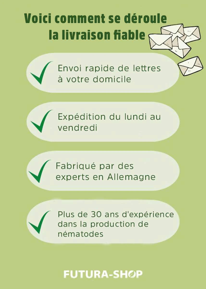 ✓ Facile à utiliser: Les insectes auxiliaires contre les vers blancs sont rapides et faciles à utiliser.