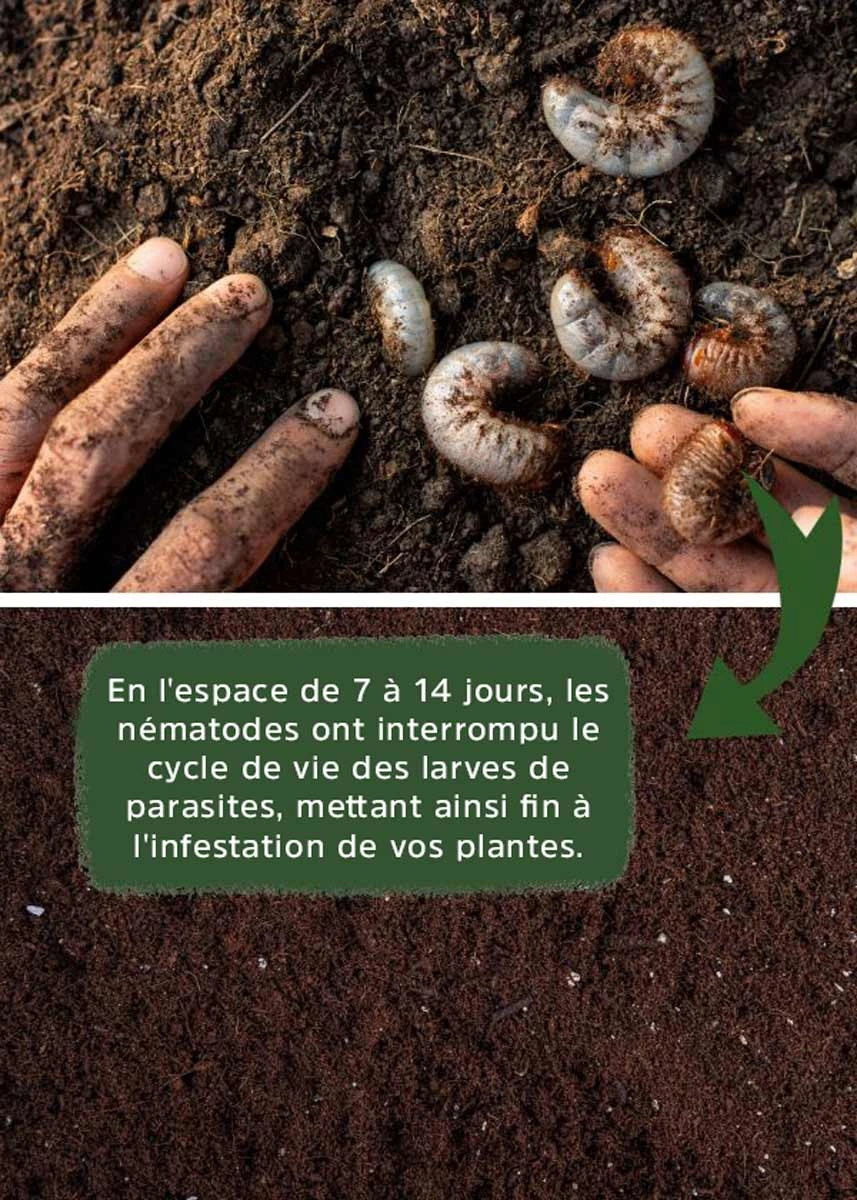 ✓ Lutte efficace: les nématodes HB constituent un moyen efficace de lutter contre les vers blancs.