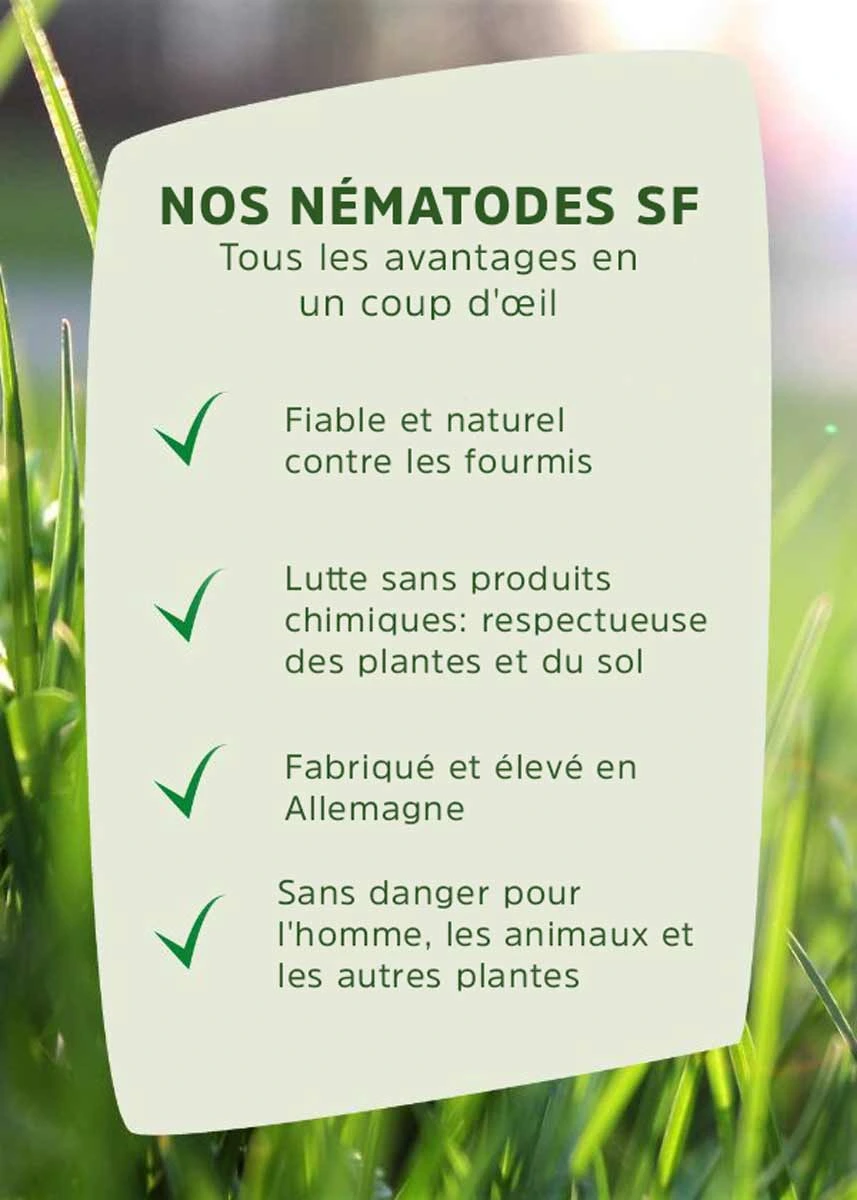 ✓ Lutte durable contre les nuisibles: en tant qu'ennemi naturel, les nématodes HB sont particulièrement durables contre les vers blancs.