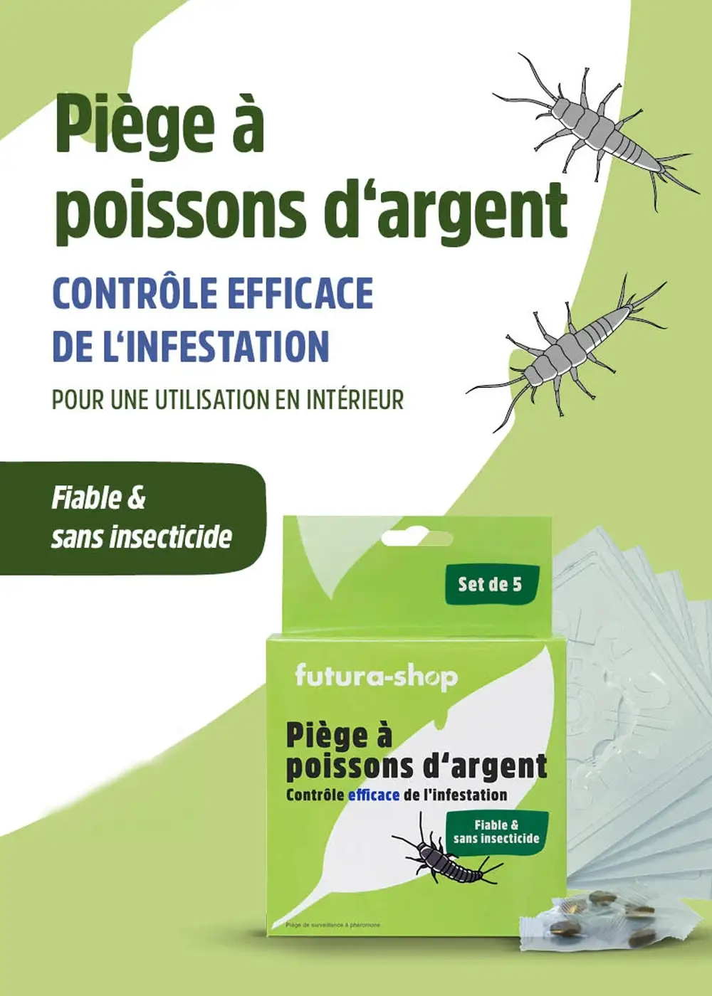 Combattre les poissons d'argent n'est pas si simple, car ces animaux sont tenaces. Les sprays permettent de tuer certains insectes visibles, mais pas tous. En revanche, les appâts des pièges à poissons d'argent sont irrésistibles pour les petits insectes. Vous attirez ainsi les poissons d'argent qui, autrement, resteraient protégés dans leur cachette. Grâce à la présentation transparente, vous pouvez contrôler chaque piège à poissons d'argent de temps en temps. Des animaux sont-ils tombés dedans ? Y en a-t-il moins ? Chez nous, vous pouvez acheter les pièges à poissons d'argent - directement auprès des professionnels. Avec la lutte sans poison, vous ne faites pas seulement du bien à vous-même, mais aussi à l'environnement. En effet, la lutte contre les insectes ne libère pas d'insecticides dans la nature. Désormais, la salle de bains vous appartient à nouveau entièrement - grâce aux pièges à poissons d'argent.