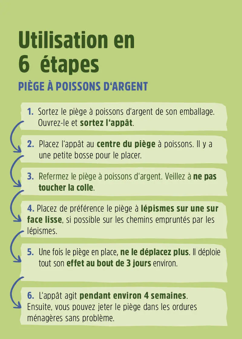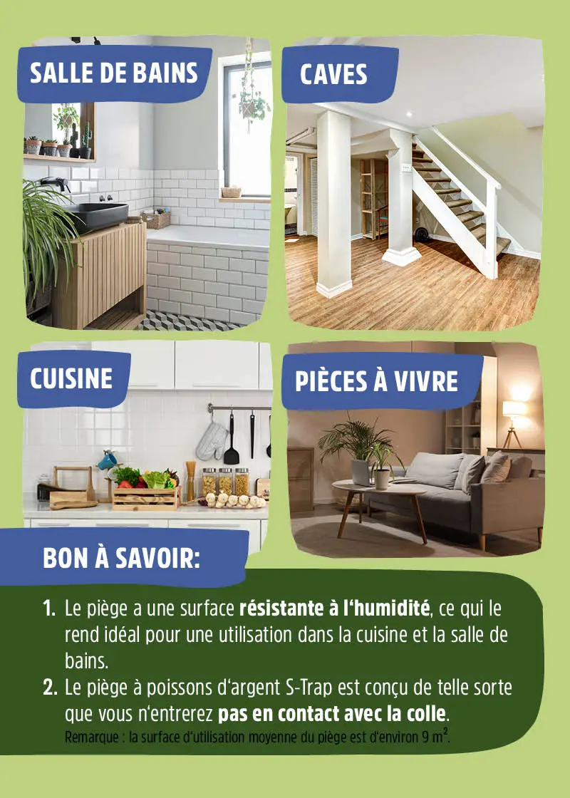 ✓ Le piège à poissons d'argent S-Trap est conçu de manière à ce que vous n'entriez pas en contact avec l'adhésif. Après utilisation, le piège peut être jeté avec les déchets ménagers ordinaires.