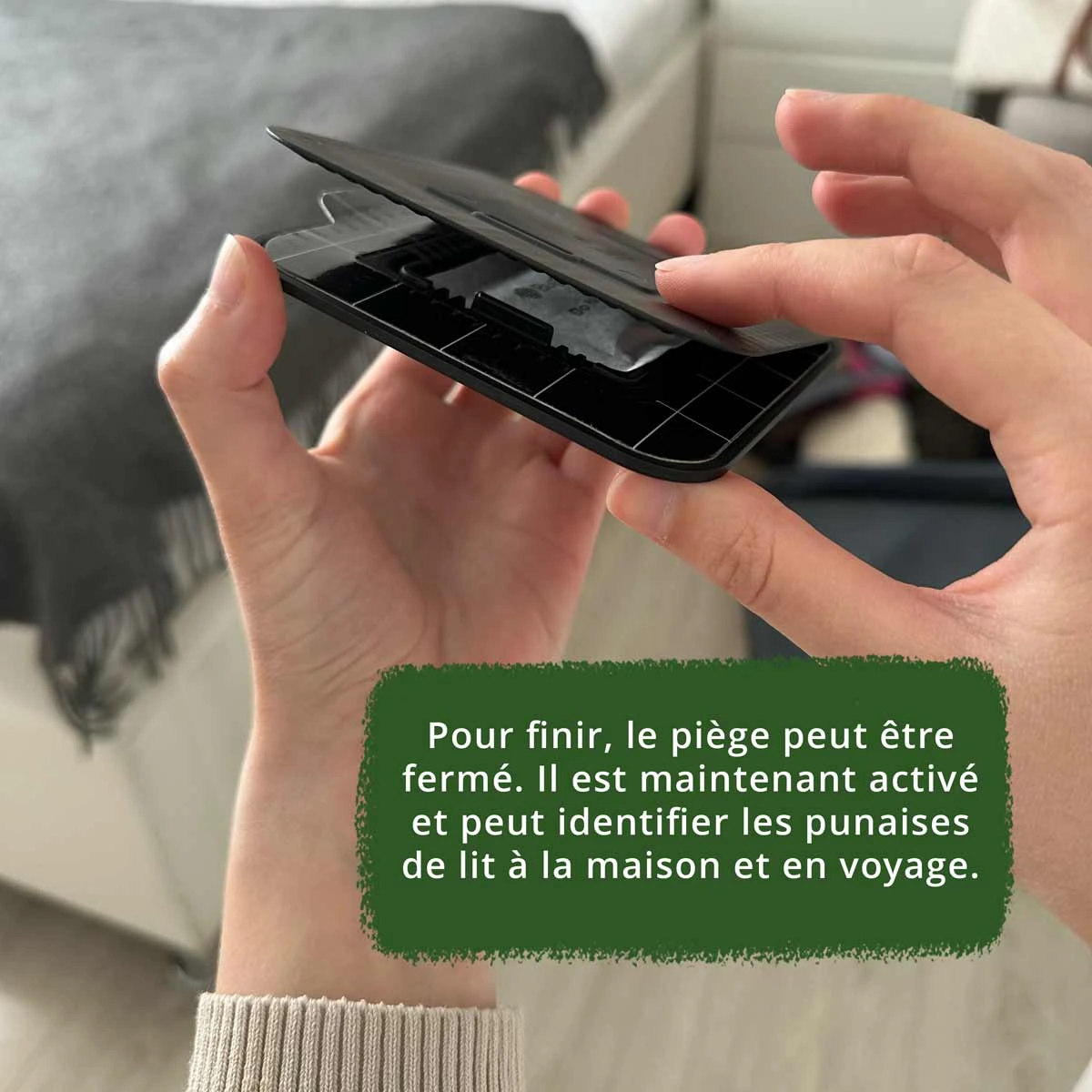 Si vous trouvez effectivement des punaises de lit dans le piège, il est important d'agir rapidement. Notre piège à punaises de lit vous fournit la preuve qu'il s'agit bien de ces parasites. Si vous n'êtes pas sûr que l'insecte que vous avez attrapé soit une punaise de lit, envoyez-le à l'institut de recherche Identification de l'insecte à notre équipe. Congelez l'insecte au préalable et enfermez-le dans un sac hermétique. Nous vous donnerons une réponse en quelques jours ouvrables. Si l'infestation est confirmée, vous devez alors agir au plus vite. Nous serons heureux de vous conseiller et de vous orienter vers un professionnel de la lutte antiparasitaire. Si vous êtes dans un hôtel et que vous avez découvert une punaise dans votre piège à punaises de lit Futura, informez-en la réception et demandez à être transféré dans une autre chambre. Avec le piège à punaises de lit Futura, vous êtes en sécurité et détectez les punaises de lit rapidement et de manière fiable en voyage et à la maison.