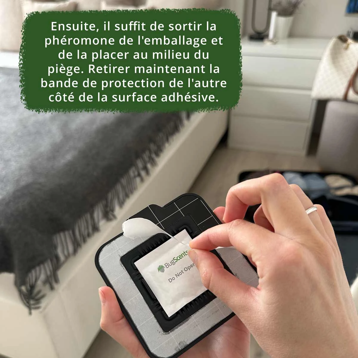 Vous soupçonnez une infestation de punaises de lit ou vous voulez être sûr lors de votre prochain voyage ? L'utilisation de notre piège à punaises de lit est très simple. Il vous suffit de suivre les instructions d'utilisation figurant sur l'emballage : pour obtenir des résultats optimaux, placez le piège près de la tête de votre lit ou directement sous ou à côté du lit. Les punaises de lit ont tendance à rester à proximité de leur hôte, en l'occurrence l'homme. Vous activez le piège en retirant la bande de protection de la surface adhésive. Vous pouvez ensuite vous détendre. Il suffit de vérifier le piège une fois par jour. Si le piège reste vide, vous pouvez dormir en toute tranquillité. Le piège à punaises de lit Futura vous indiquerait une infestation.