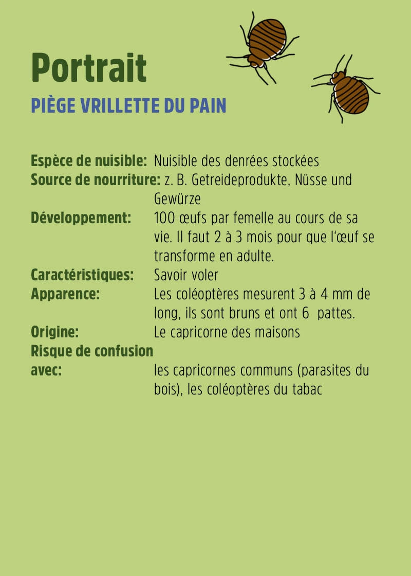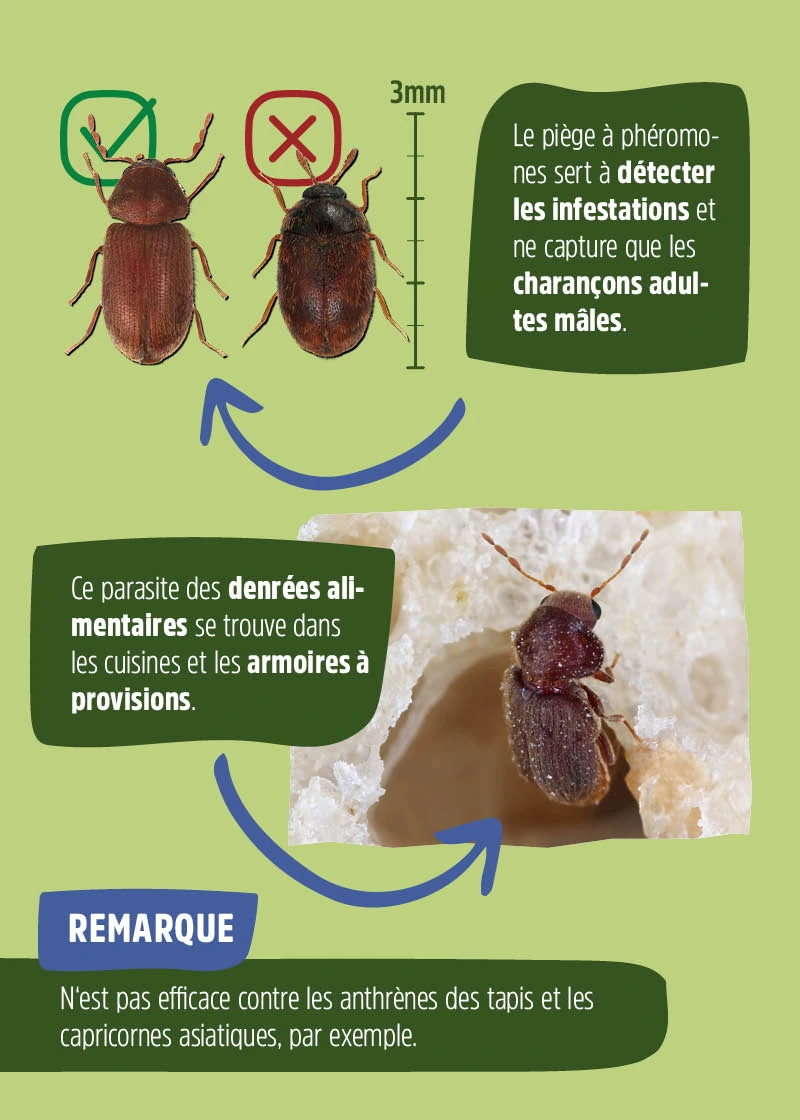 - Ils capturent les charançons du pain mâles et minimisent ainsi l'infestation.
